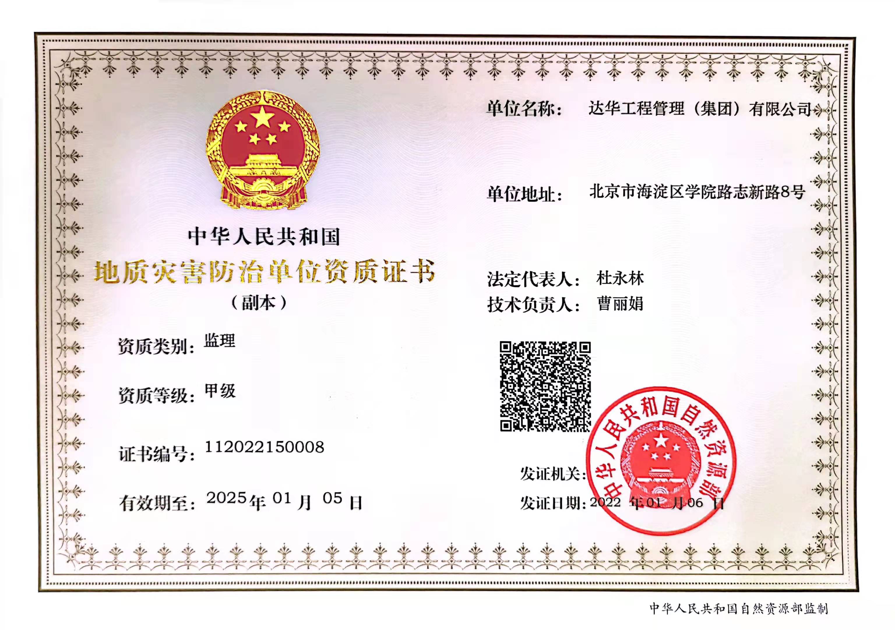 • 達華集團榮獲中國自然資源部頒發(fā)的地質(zhì)災害…